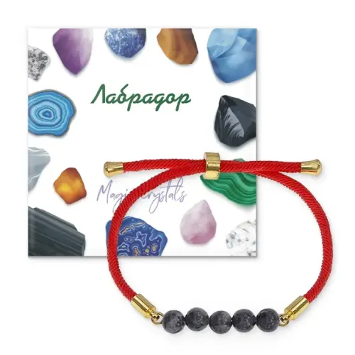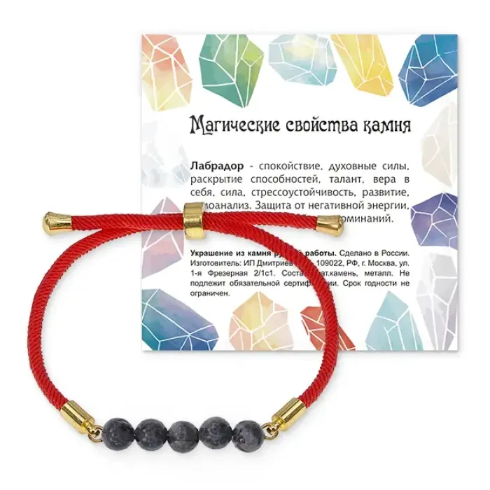 Браслет из натурального камня лабрадор на регулируемом шнуре.