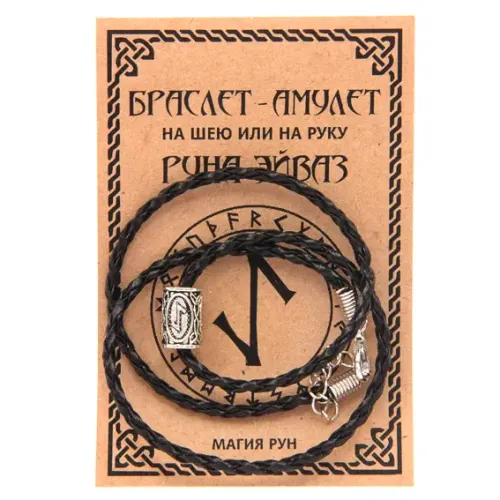 Браслет-амулет с рунической бусиной Эйваз — это стильное и значимое украшение, которое можно носить как на запястье, так и на шее. Рунические бусины стали настоящим трендом! Для удобства использования предусмотрена возможность укоротить шнурок (инструкция прилагается). Также бусины могут служить оригинальным декором для косичек и бород. Специальная резинка надежно фиксирует бусину на шнурке, предотвращая её свободное скольжение. Браслеты упакованы в качественные пакеты с европодвесом и вкладышем с инструкцией. Чёрный кожаный шнурок добавляет элегантности этому аксессуару. Согласно традициям, амулет Эйваз защищает от физических угроз, помогает преодолеть страхи и фобии, а также устраняет преграды на пути к успеху.