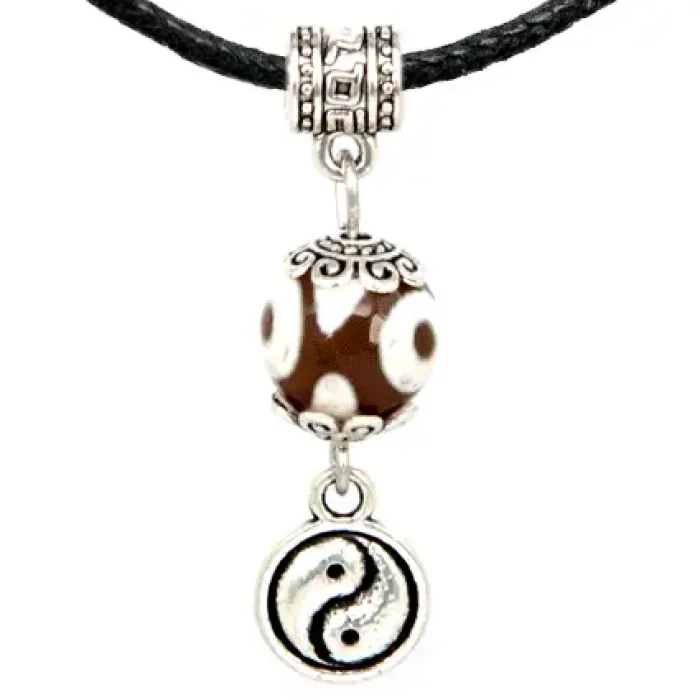 Амулет с бусиной Дзи Инь-Ян — это не просто украшение, а мощный символ гармонии и равновесия. Бусины Дзи, обладая уникальной силой, традиционно используются в качестве амулетов для привлечения удачи и защиты. Каждая бусина украшена стилизованными изображениями мантр, которые несут глубокий культурный смысл. По тибетским хроникам, эти бусины считаются даром небес: во времена бедствий боги разорвали свои бусы и бросили их на землю как знак помощи людям.