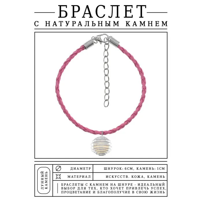 Браслет с натуральным камнем лунный камень (опалит) на регулируемом шнурке.