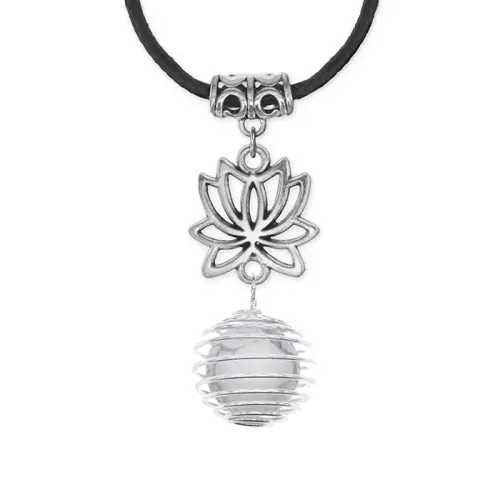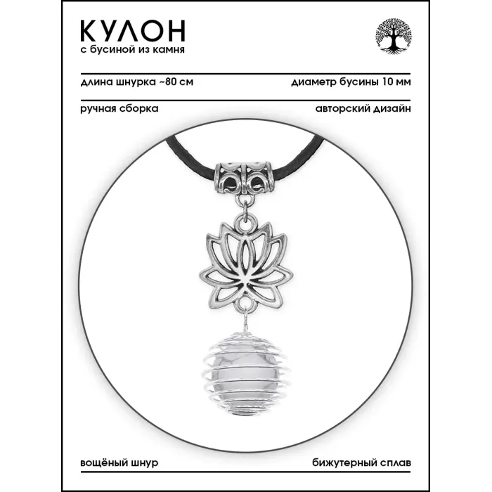 Амулет-кулон в виде лотоса с натуральным камнем кахолонг, выполненный из бижутерного сплава.
