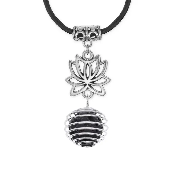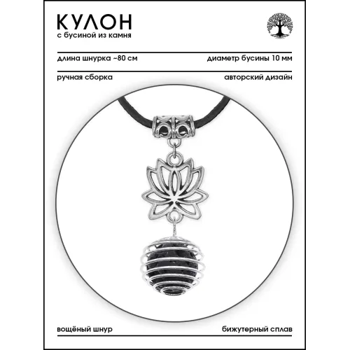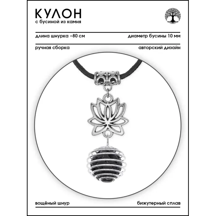 Амулет-кулон ручной работы в форме лотоса из натурального камня лава (базальт).
