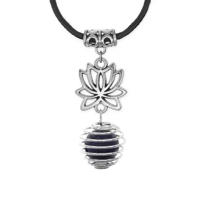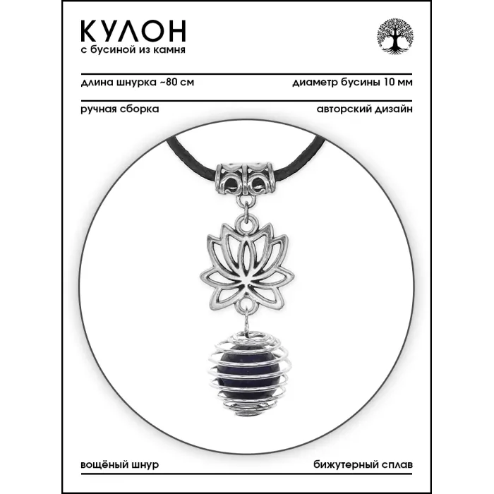 Кулон-амулет ручной работы из натурального камня лазурит в форме лотоса.