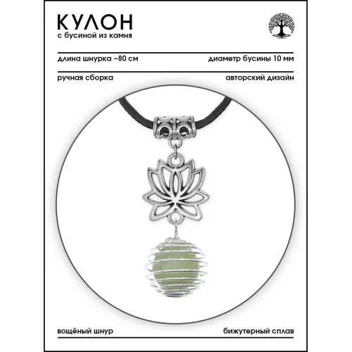 Кулон-амулет ручной работы из синтетического камня оникс в форме лотоса.