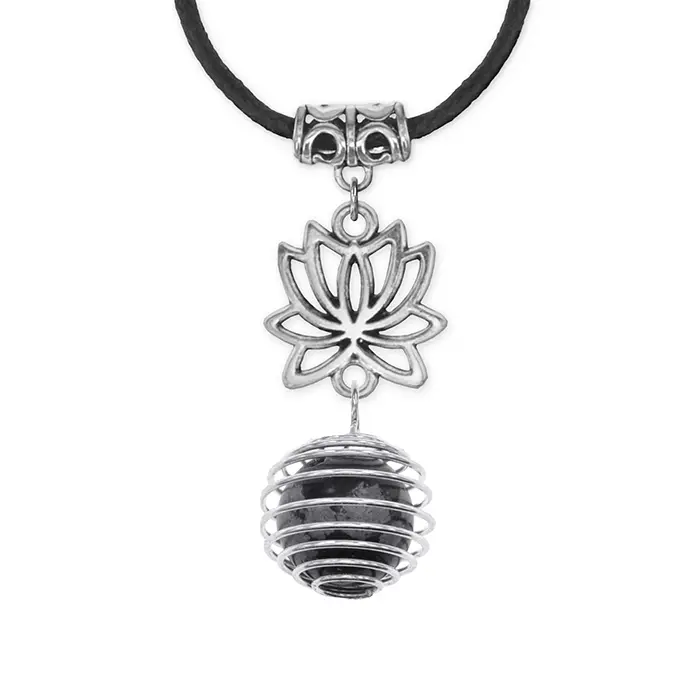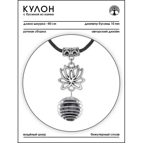 Амулет Лотос с нат.камнем Снежный обсидиан MKA-4001-14