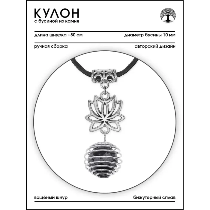 Размеры и комплектация: Диаметр бусины 10 мм, в комплекте вощёный шнурок длиной около 80 см, упаковка — прозрачный пакет.