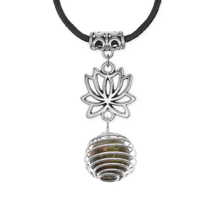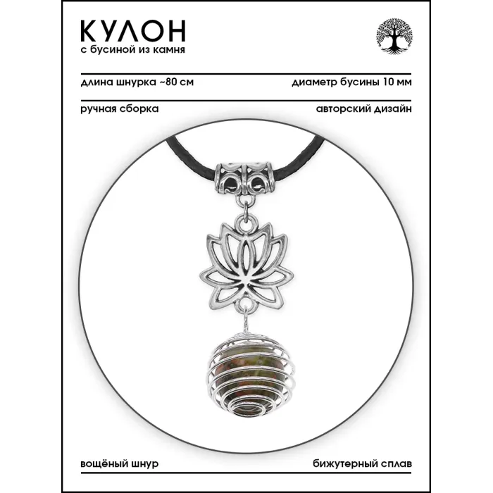 Кулон-амулет ручной работы из натурального камня унакит в форме лотоса.