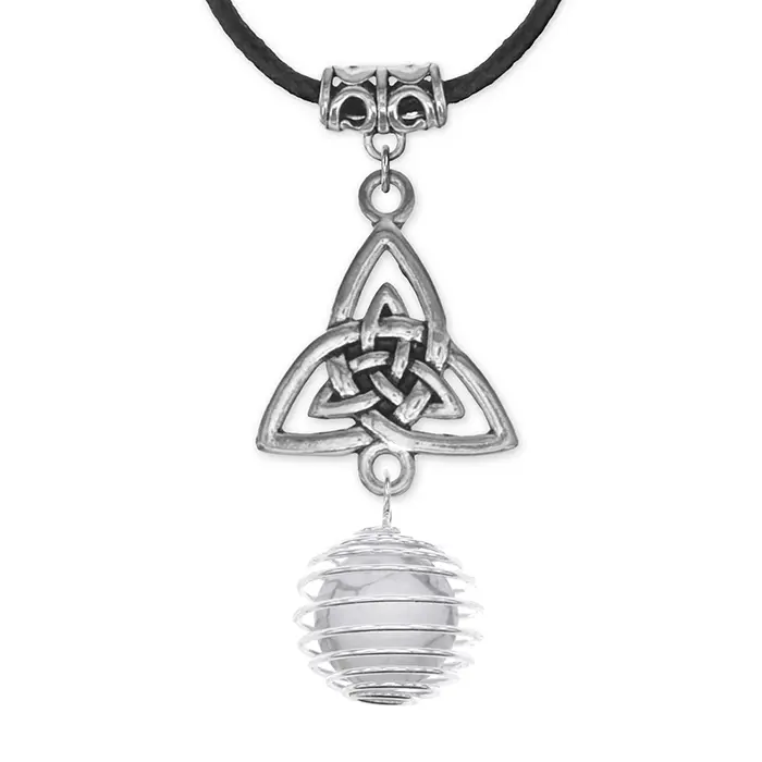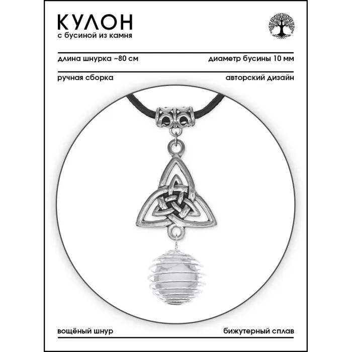 Амулет-кулон ручной работы в виде трикветра с натуральным камнем кахолонг.