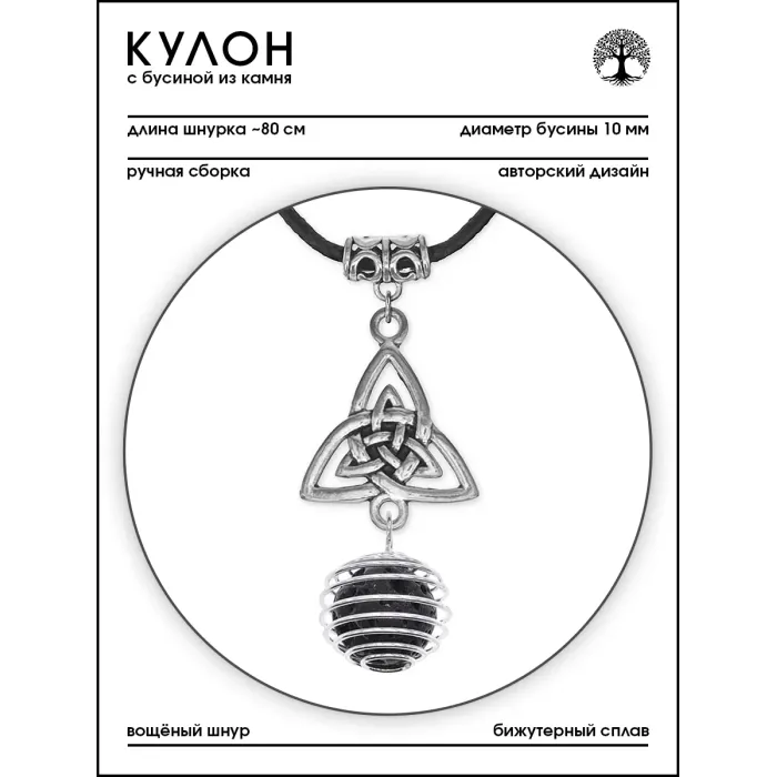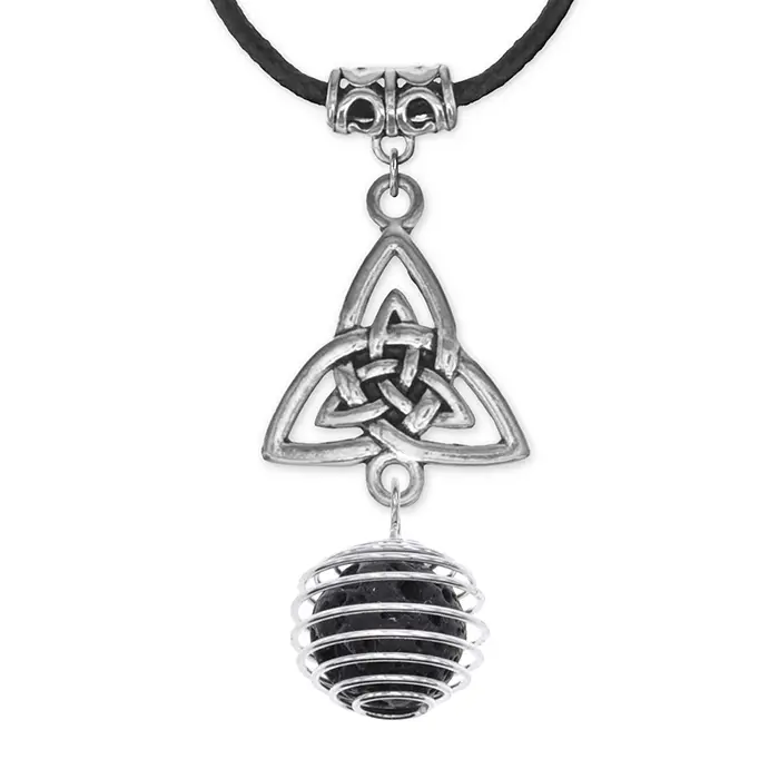 Амулет-кулон Трикветр с натуральным камнем лава, ручной работы.