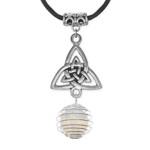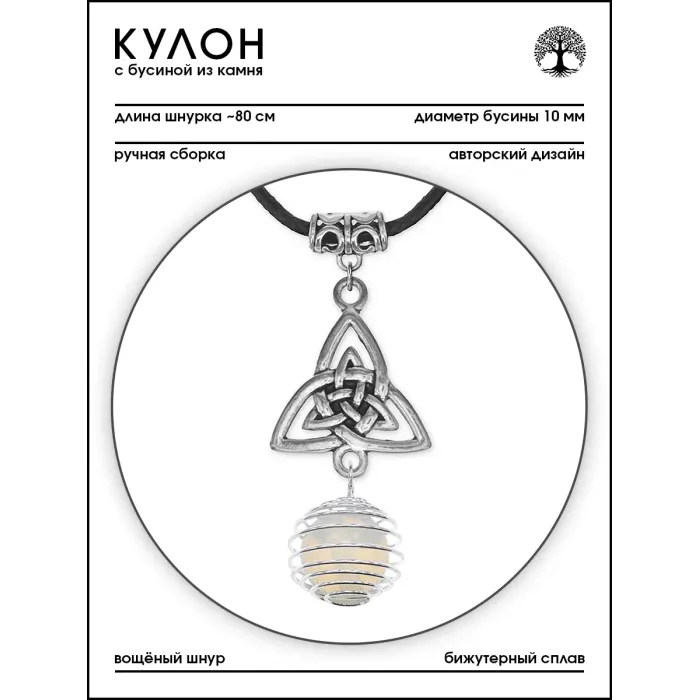 Кулон-амулет из коллекции «Магия камня 3» выполнен из синтетического лунного камня с символом трикветр.