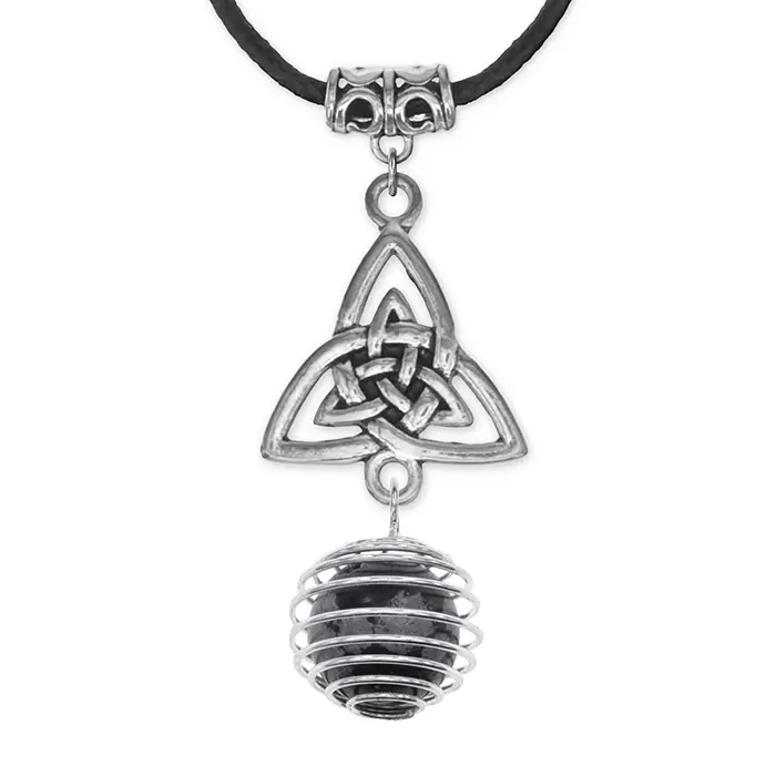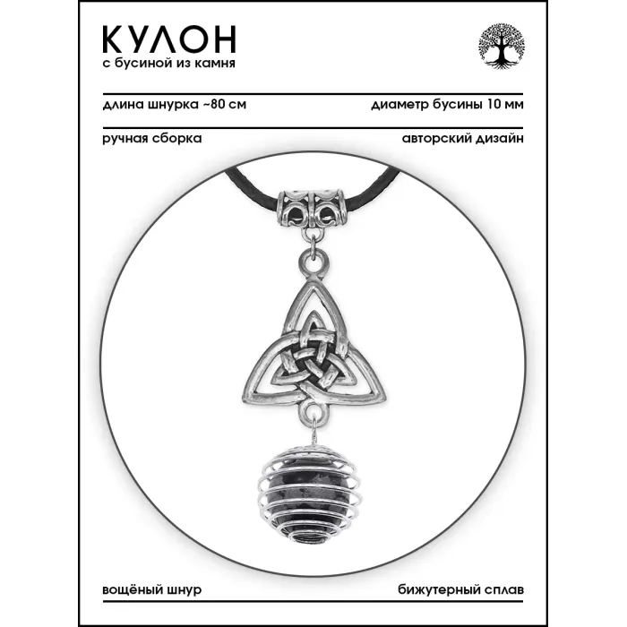 Амулет-кулон ручной работы в виде трикветра с натуральным камнем снежный обсидиан.