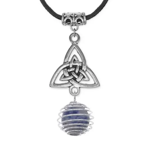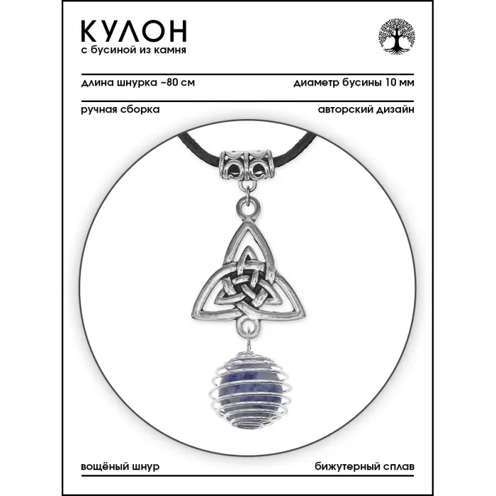 Кулон-амулет ручной работы из натурального камня содалит с символом трикветр.