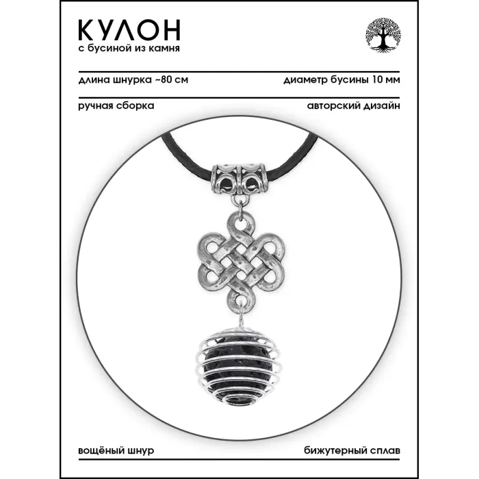 Размеры и комплектация: Диаметр бусины из камня составляет 10 мм. Упакован в прозрачный пакет, укомплектован вощёным шнурком длиной около 80 см.