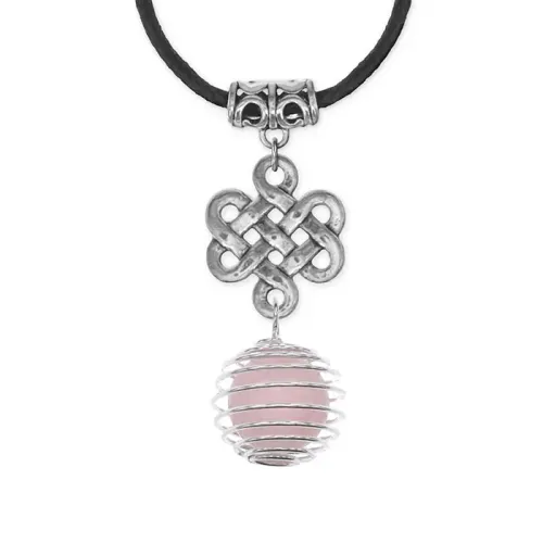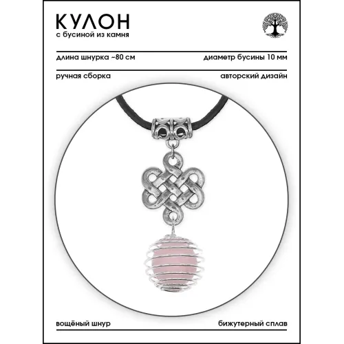 Кулон-амулет ручной работы из натурального розового кварца в форме бесконечного узла.