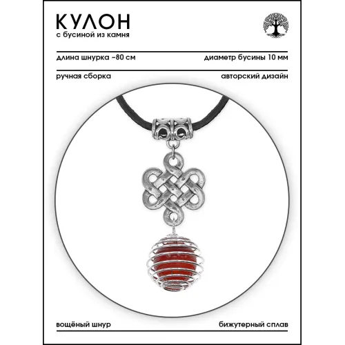 Размеры и комплектация: Диаметр бусины 10 мм. Комплектуется вощёным шнурком длиной около 80 см. Упаковка: прозрачный пакет.