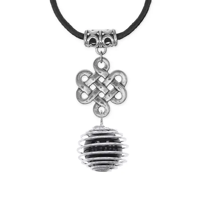 Амулет-кулон в виде бесконечного узла из натурального чёрного агата и бижутерного сплава.