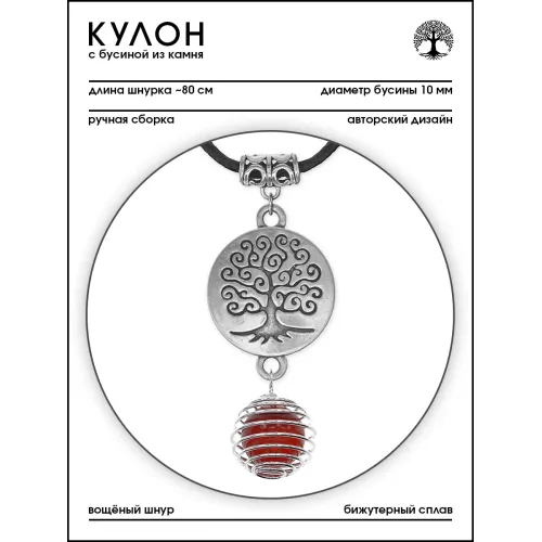 Амулет Дерево жизни с натуральным камнем сердолик — кулон ручной работы из бижутерного сплава.