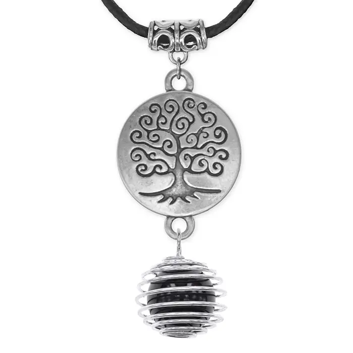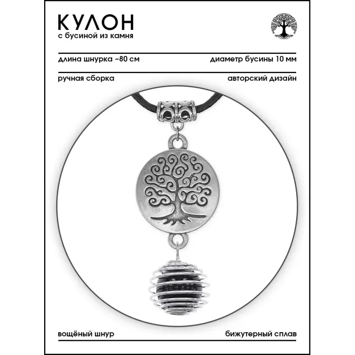 Амулет-кулон Дерево жизни из бижутерного сплава с натуральным камнем черный агат.