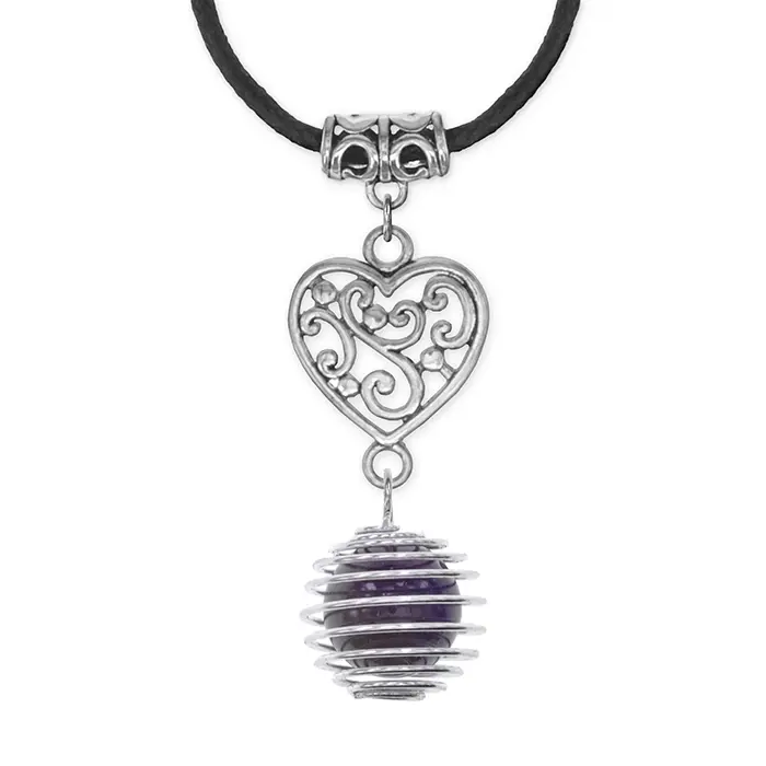 Амулет Сердце с нат.камнем Аметист MKA-4005-01