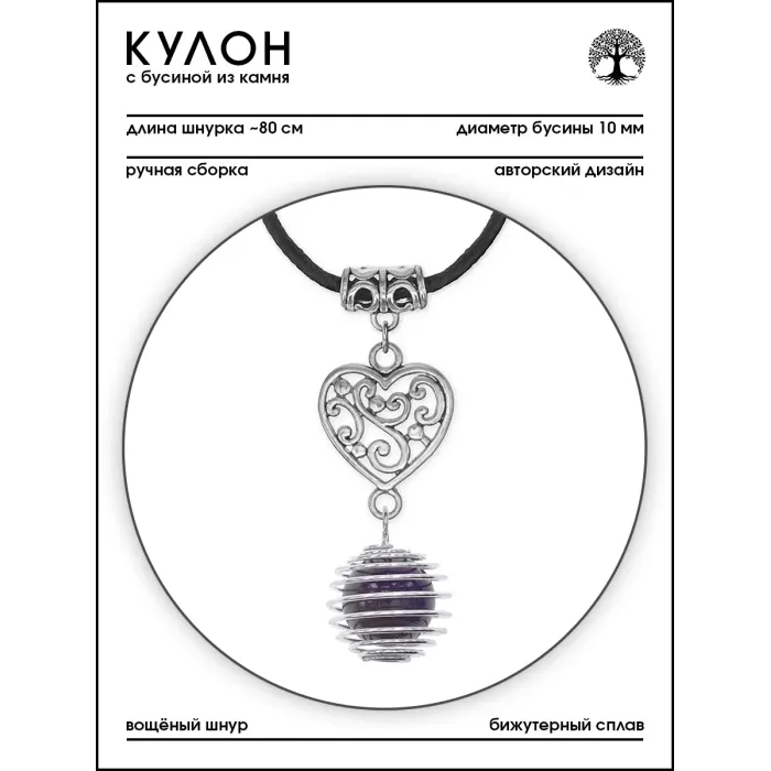 Кулон-амулет ручной работы из натурального камня аметист, укомплектованный шнурком.