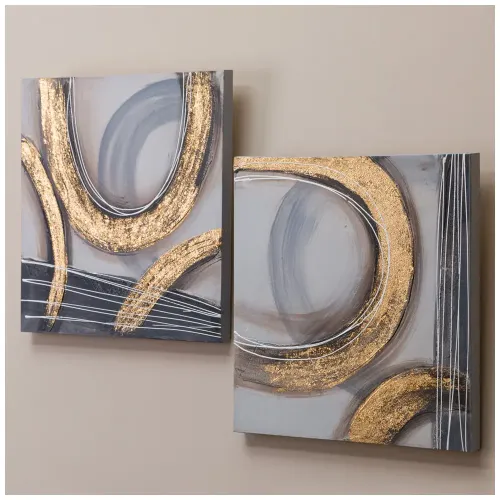 Комплект из двух картин «Золотая абстракция» от Bronco предназначен для украшения интерьера дома или офиса. Каждое полотно размером 40x40 см выполнено вручную и отличается уникальным сочетанием тонких линий и текстурированного объёма.
