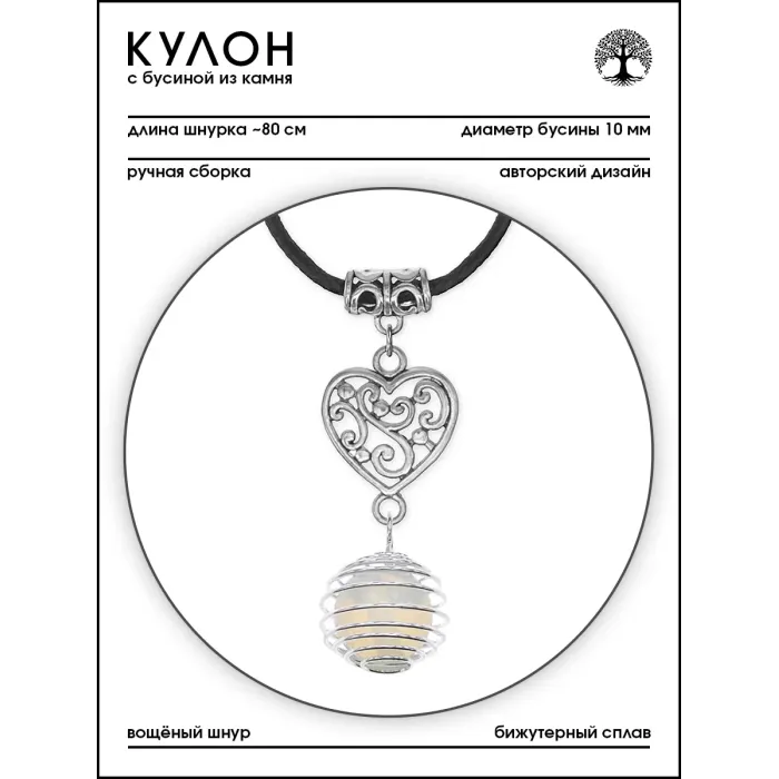 Материал и изготовление: Синтетический лунный камень, бижутерный сплав с покрытием под серебро. Диаметр бусины из камня — 10 мм.