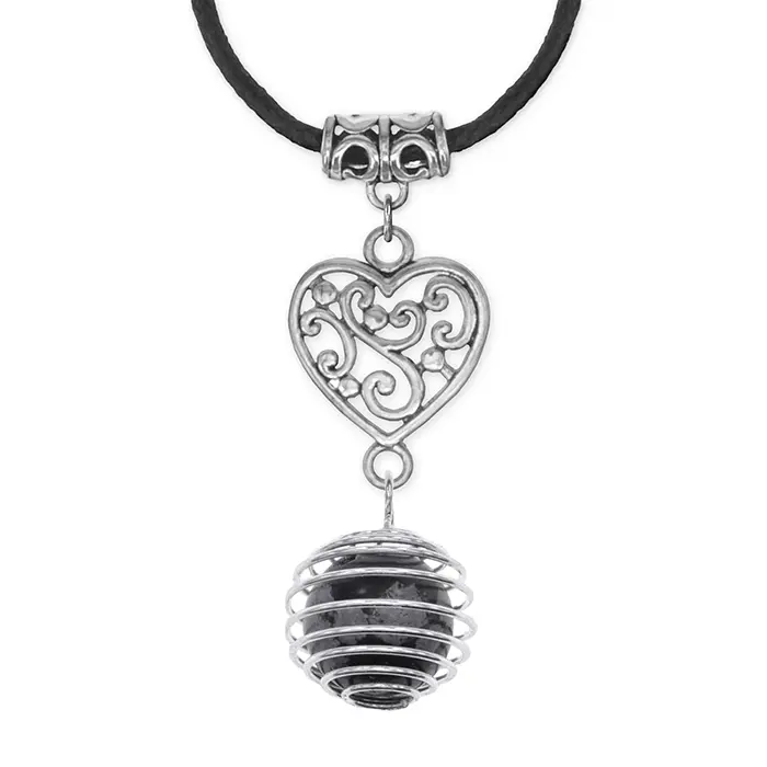 Амулет Сердце с нат.камнем Снежный обсидиан MKA-4005-14