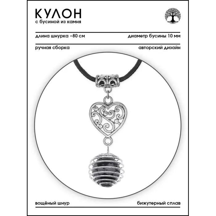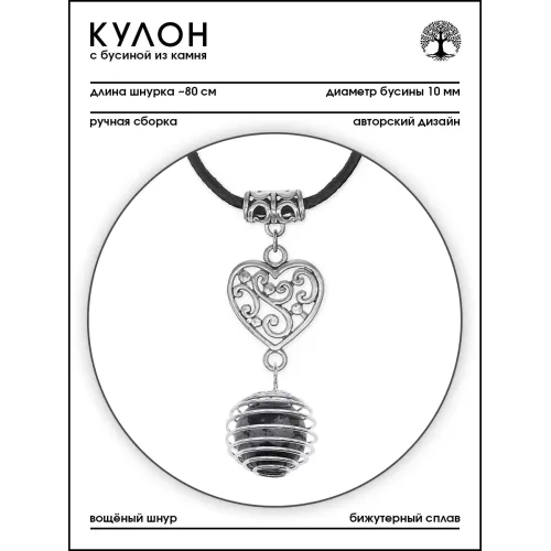 Кулон-амулет ручной работы из коллекции Магия камня 3 (эконом) выполнен из натурального камня Снежный обсидиан. Этот амулет упакован в прозрачный пакет и укомплектован вощёным шнурком длиной около 80 см. Бусина из камня диаметром 10 мм, а материал — бижутерный сплав с покрытием под серебро.