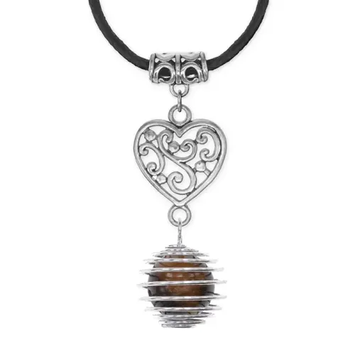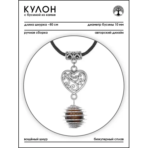 Кулон-амулет ручной работы из натурального камня Тигровый глаз в форме сердца.