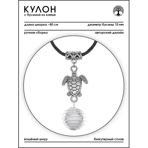 Амулет-кулон в виде черепахи с натуральным камнем кахолонг из коллекции «Магия камня 3».