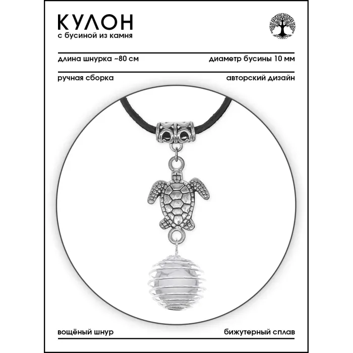 Размеры и комплектация: Диаметр бусины из камня — 10 мм. В комплекте вощёный шнурок длиной ~80 см. Упаковка — прозрачный пакет.