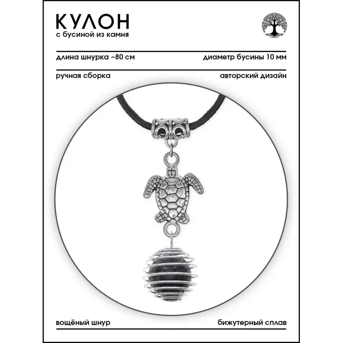Размеры и комплектация: Диаметр каменной бусины 10 мм. Комплектуется вощёным шнурком длиной около 80 см. Упаковка — прозрачный пакет.