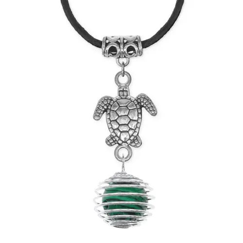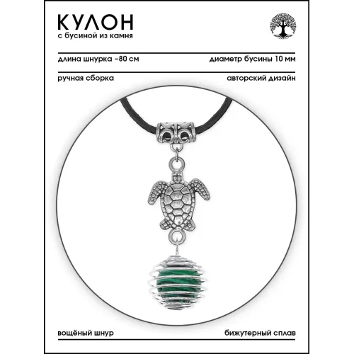 Кулон-амулет из коллекции "Магия камня 3 (эконом)" в форме черепахи с синтетическим камнем малахит.
