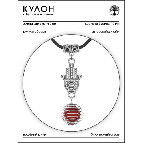 Кулон-амулет ручной работы из натурального сердолика в форме Хамсы.