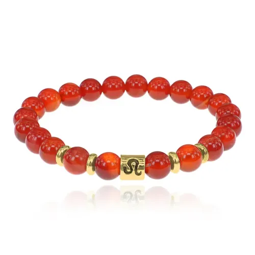 Браслет Знаки Зодиака - Лев с натамнем Сердолик 8мм BSZE02-05