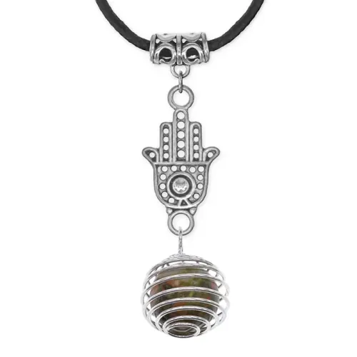 Амулет Хамса с нат.камнем Унакит MKA-4007-17