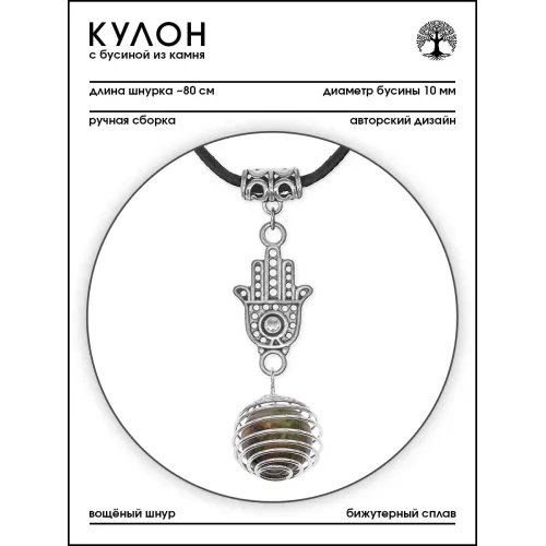 Кулон-амулет ручной работы из натурального камня унакит в форме Хамсы.