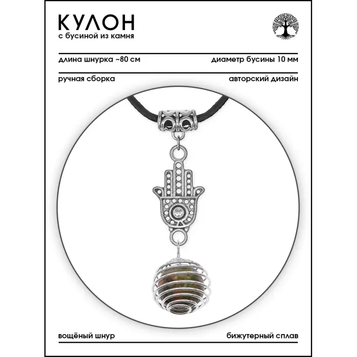 Размеры и комплектация: Диаметр бусины из камня 10 мм. В комплекте вощёный шнурок длиной около 80 см. Упаковка — прозрачный пакет.
