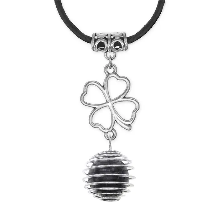 Амулет Клевер удачи — кулон ручной работы из натурального лабрадора и бижутерного сплава.