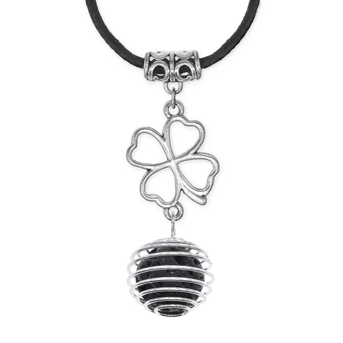 Кулон-амулет ручной работы из натурального камня лава в форме клевера.
