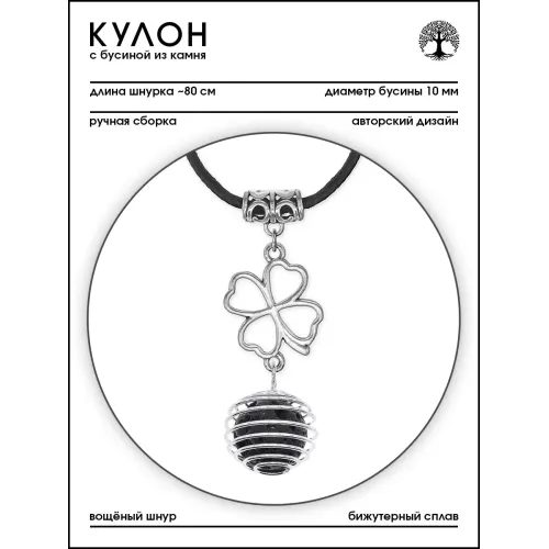 Размеры и комплектация: Диаметр каменной бусины 10 мм. Комплектуется вощёным шнурком длиной около 80 см. Упаковка: прозрачный пакет.