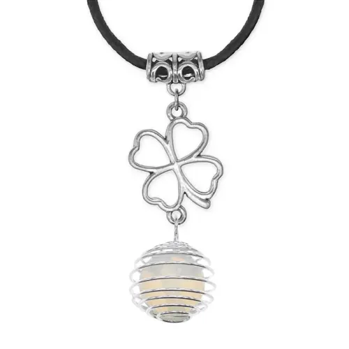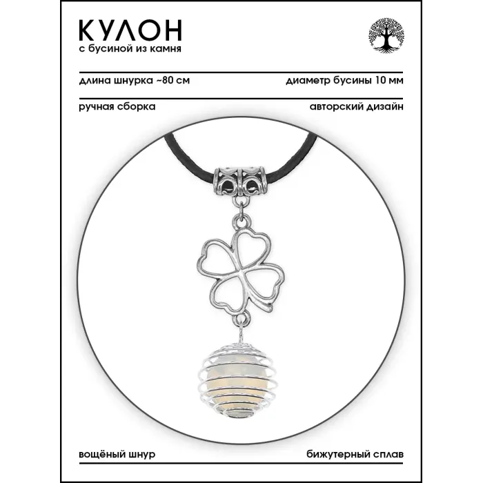 Амулет Клевер удачи с синт.камнем Лунный камень MKA-4008-07