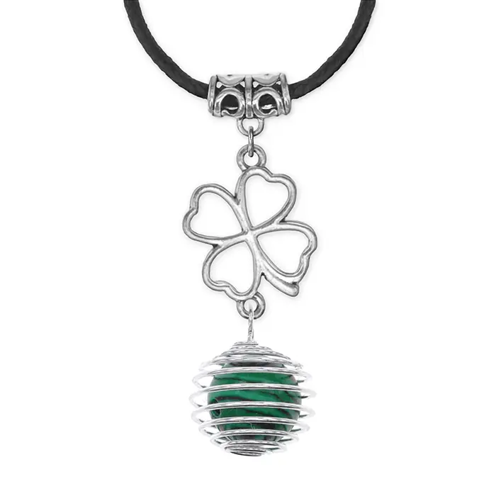 Амулет Клевер удачи с синт.камнем Малахит MKA-4008-08