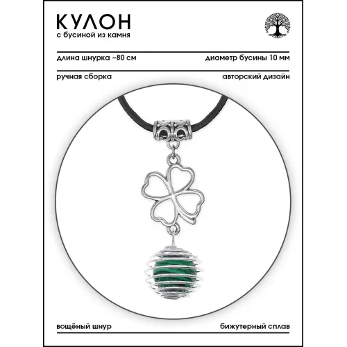 Кулон-амулет из коллекции 'Магия камня 3' выполнен из синтетического малахита и бижутерного сплава.