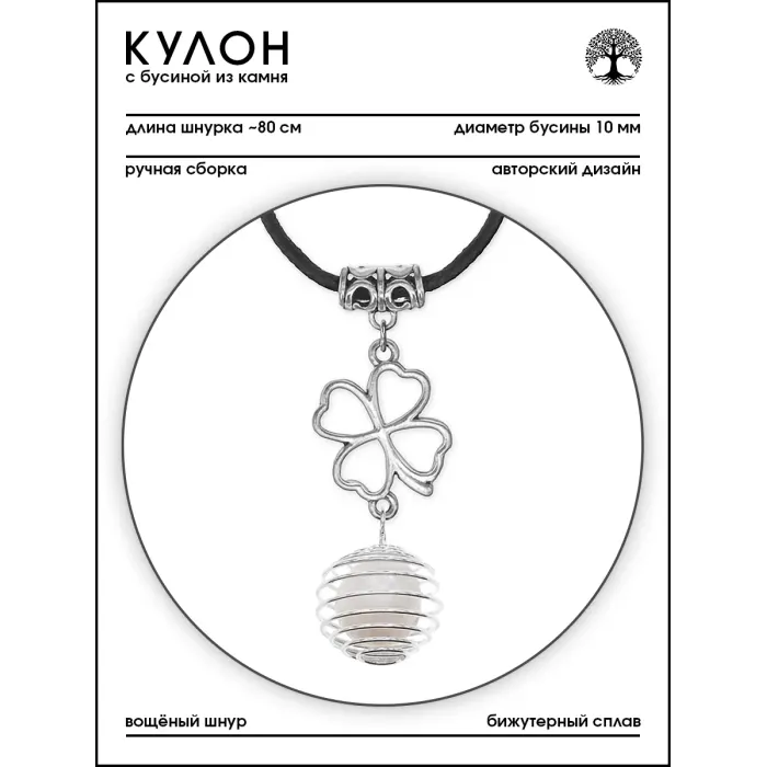 Амулет Клевер удачи с нат.камнем Жемчуг речной MKA-4008-09