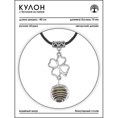 Амулет Клевер удачи с натуральным камнем Унакит — это уникальный кулон ручной работы из коллекции Магия камня 3 (эконом), который не только привлекает внимание, но и символизирует удачу и гармонию. Изготовленный из бижутерного сплава с покрытием под серебро, он дополнен красивой бусиной из натурального камня Унакит диаметром 10 мм.