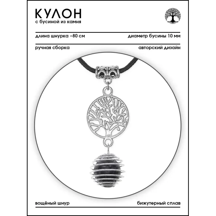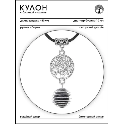 Размеры и комплектация: Бусина диаметром 10 мм, вощёный шнурок длиной около 80 см, упаковка — прозрачный пакет.