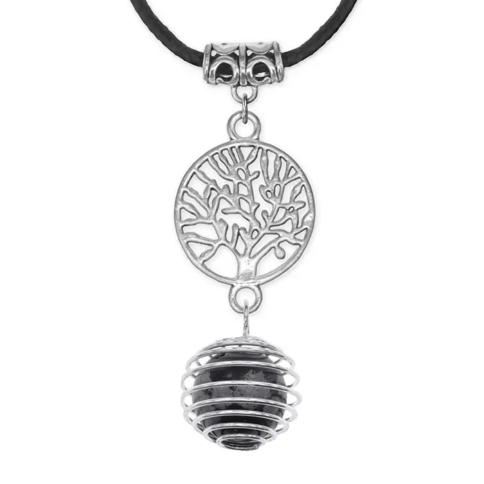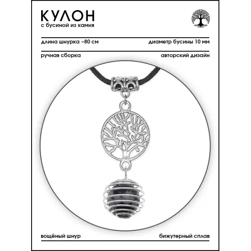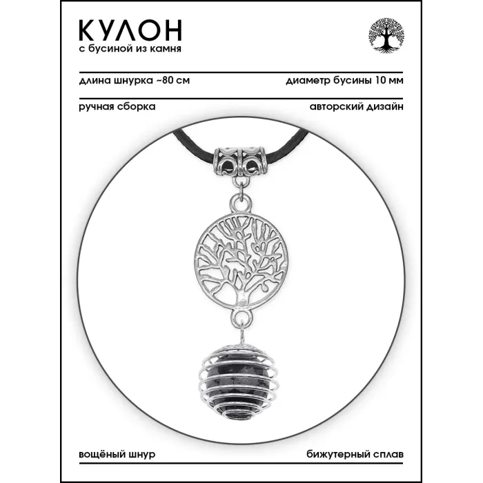 Кулон-амулет ручной работы из натурального камня снежный обсидиан с дизайном «Дерево жизни».