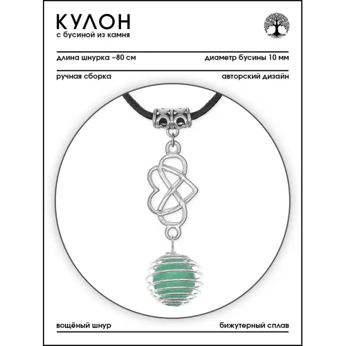 Размеры и комплектация: Диаметр нефритовой бусины — 10 мм. Комплектуется вощёным шнурком длиной около 80 см. Упаковка — прозрачный пакет.