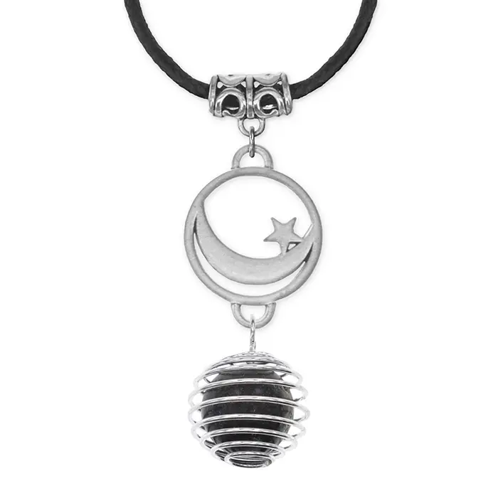 Кулон-амулет ручной работы из натурального камня змеевик в форме полумесяца со звездой.